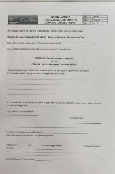 Sezione dedicata per suggerimenti o reclami